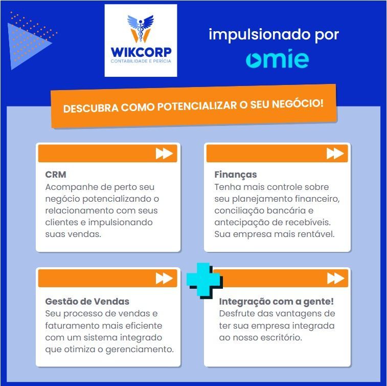 Estou passando para compartilhar uma grande novidade: a WIKCORP CONTABILIDADE E PERÍCIA é parceira da OMIE, o ERP nº 1 para gestão empresarial! 🚀